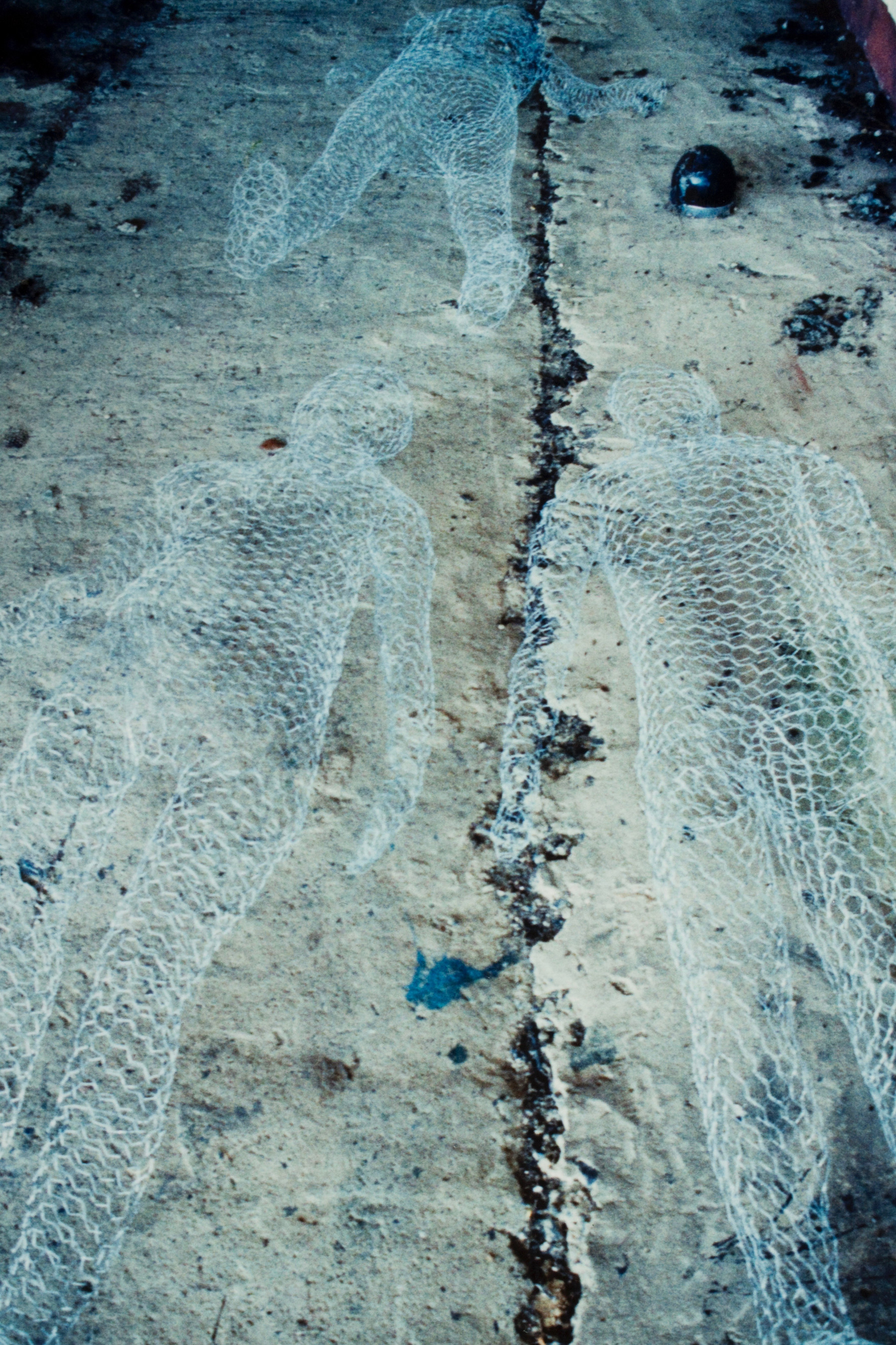 Die Skulpturen, die aus 6-Eck-Maschendraht geformt sind, sind erst auf den zweiten Blick erkennbar. Der Maschendraht passt sich durch seine filigrane Struktur der Umgebung an. Er wirkt verletzlich und in seiner Zweckentfremdung nahezu unsichtbar. Die Skulpturen sind einzeln und in Gruppen über das Gelände verteilt in Bäumen, auf Mauern und an verschiedenen anderen Stellen befestigt.